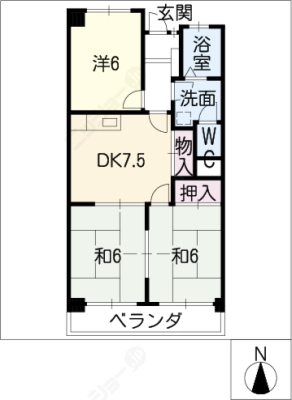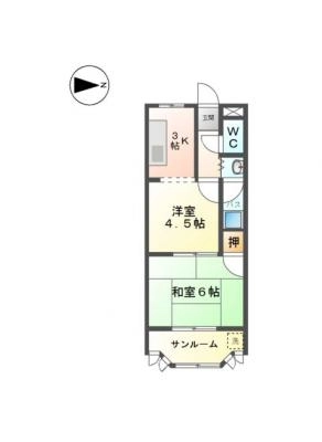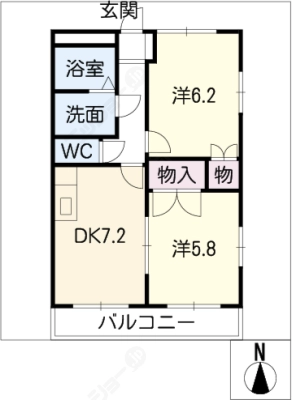 敷 金1ヶ月 / 償 却10割間取り 2LDK / 57.30入居日 即 可