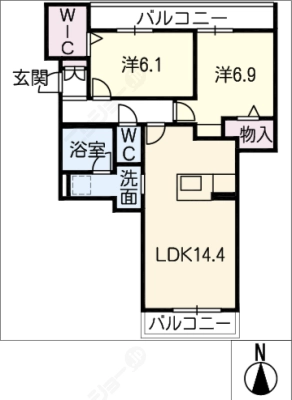 敷 金1ヶ月 / 礼 金1ヶ月間取り 2LDK / 69.51入居日 即 可