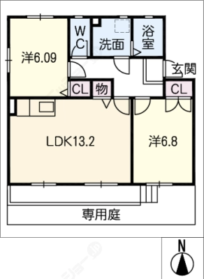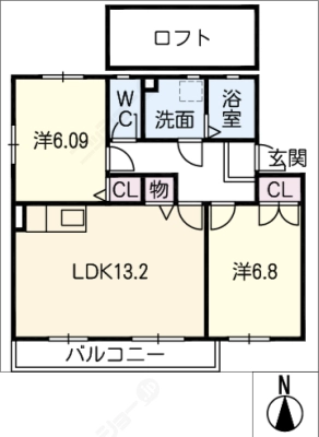敷 金2ヶ月 / 償 却10割間取り 2LDK / 59.24入居日 即 可