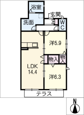 保証金----- / 礼 金-----間取り 2LDK / 63.13㎡入居日 2025年12月下旬