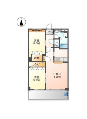 敷 金1.00ヶ月 / 礼 金-----間取り 2LDK / 57.75㎡入居日 即 可