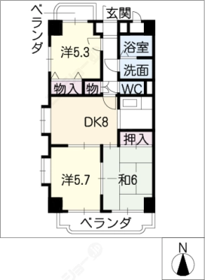 敷 金1ヶ月 / 償 却10割間取り 3DK / 57.33㎡入居日 2026年2月上旬