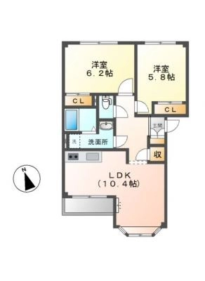敷 金1.00ヶ月 / 礼 金-----間取り 2LDK / 59.50㎡入居日 即 可