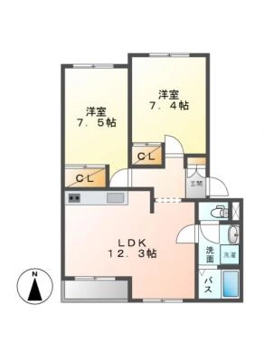 敷 金1.00ヶ月 / 償 却10割間取り 2LDK / 55.44㎡入居日 即 可