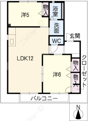 保証金----- / 礼 金2万間取り 2LDK / 54.57入居日 即 可