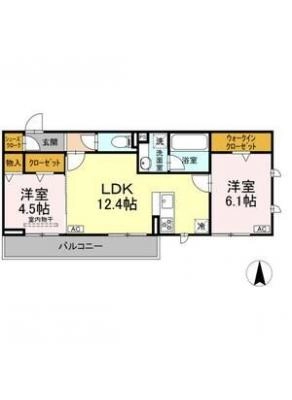 保証金40,000 / 償 却40,000間取り 2DK / 46.37㎡入居日 即 可