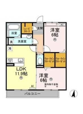 保証金----- / 礼 金1.50ヶ月間取り 2LDK / 60.19入居日 2026年4月25日頃