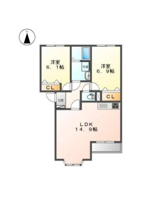 保証金1.00ヶ月 / 償 却1.00ヶ月間取り 2LDK / 41.89㎡入居日 相 談