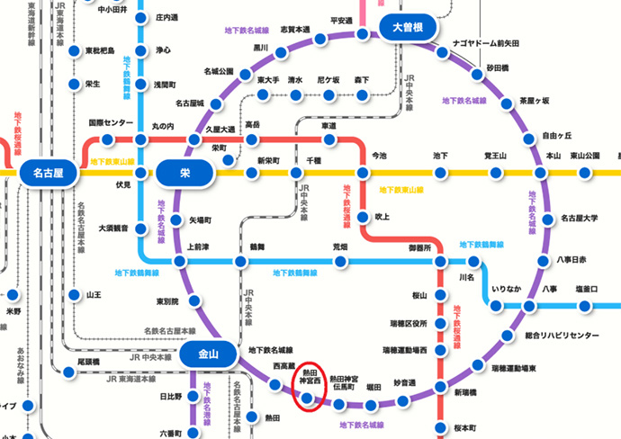 熱田神宮西駅は地下鉄名城線が利用できる駅です。