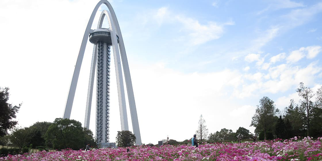 国営木曽三川公園内にあり、高さ138メートルの展望タワー「ツインアーチ138」建っています。