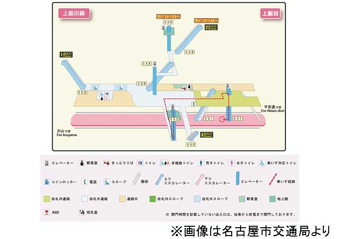 <地下鉄鶴舞線から名鉄小牧線に乗り換える場合>