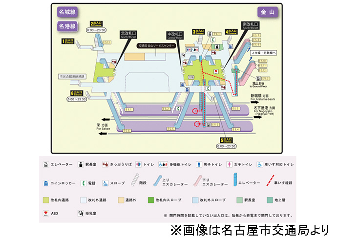 <地下鉄(名城線・名港線)からその他の公共交通機関に乗り換える場合>