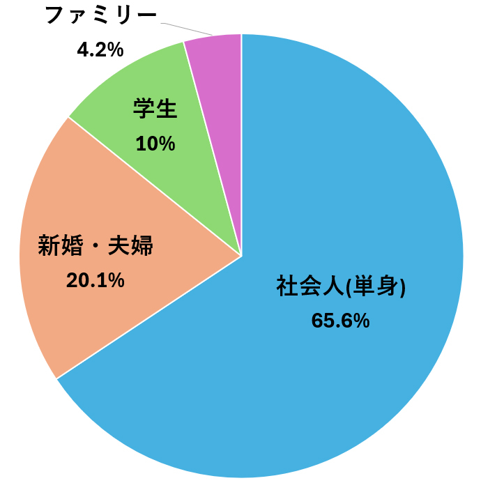 ◎社会人(単身)は『65.6%』