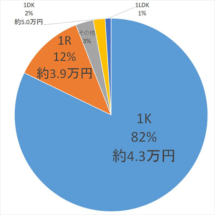 平均家賃は約4.3万円