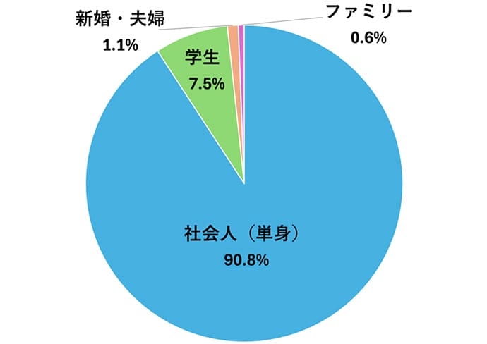 ◎社会人(単身)は『90.8%』