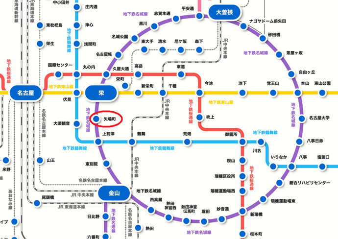 矢場町駅は地下鉄名城線が利用できる駅です。
