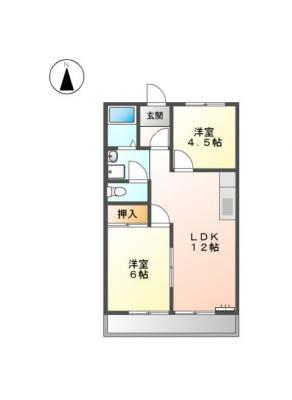敷 金46,200 / 礼 金-----間取り 2LDK / 44.88㎡入居日 2025年12月中旬