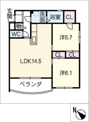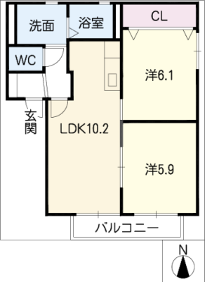 保証金----- / 礼 金1ヶ月間取り 2LDK / 61.10㎡入居日 即 可