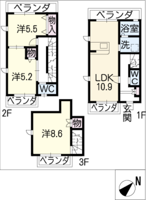 2階5.2万円 / 共益費等 4,300円