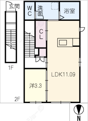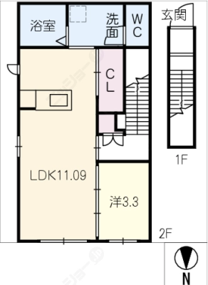 保証金3万 / 償 却10割間取り 2K / 34.43入居日 即 可