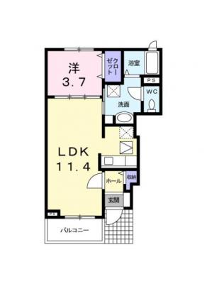 敷 金1ヶ月 / 礼 金1ヶ月間取り 1K / 27.24入居日 即 可