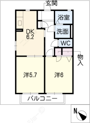 敷 金1ヶ月 / 礼 金-----間取り 2LDK / 57.80㎡入居日 即 可