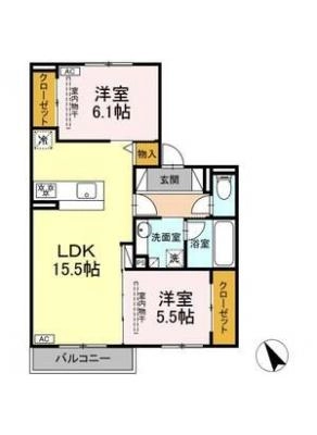 2階61,500円 / 共益費等 3,500円