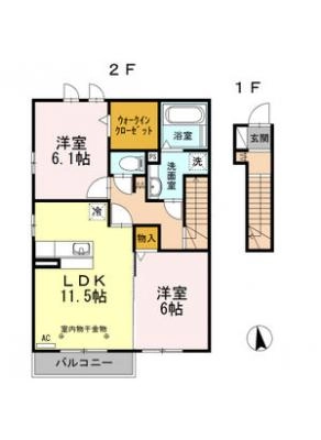 保証金1.5ヶ月 / 償 却10割間取り 2LDK / 61.84入居日 即 可