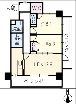 保証金5万 / 償 却10割間取り 2LDK / 57.54入居日 即 可