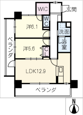 敷 金1ヶ月 / 礼 金1ヶ月間取り 2LDK / 61.24入居日 2026年2月中旬