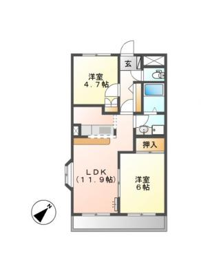 敷 金2ヶ月 / 礼 金1ヶ月間取り 2LDK / 56.95入居日 2026年1月上旬
