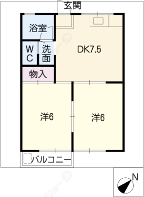 保証金50,000 / 償 却10割間取り 2DK / 43.69入居日 即 可