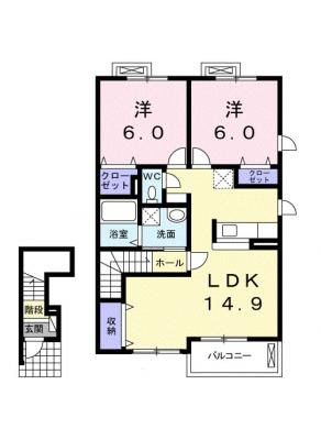 保証金----- / 礼 金-----間取り 2LDK / 58.48㎡