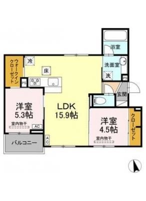 保証金----- / 礼 金-----間取り 2LDK / 59.62入居日 2026年2月中旬