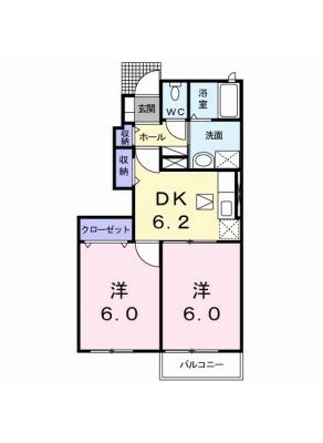 敷 金8万 / 償 却10割間取り 2DK / 44.55㎡入居日 即 可