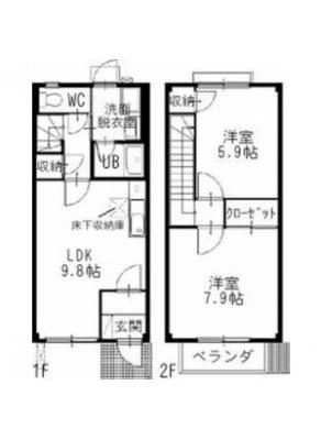 敷 金1ヶ月 / 償 却10割間取り 2LDK / 60.14㎡入居日 即 可