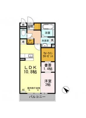 保証金2ヶ月 / 償 却10割間取り 1DK / 34.91入居日 即 可