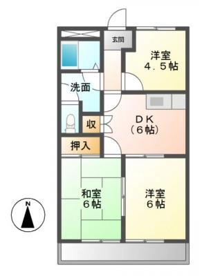 保証金1.00ヶ月 / 償 却10割間取り 3DK / 56.70入居日 即 可