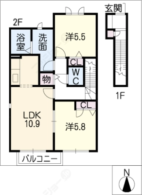 1階5.8万円 / 共益費等 2,900円