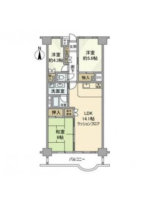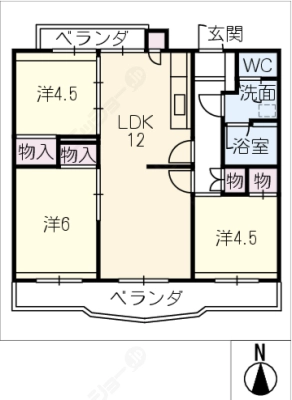 敷 金2.00ヶ月 / 礼 金1.00ヶ月間取り 3LDK / 65.86入居日 相 談