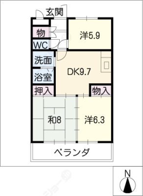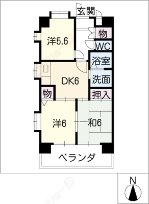 敷 金1ヶ月 / 礼 金1ヶ月間取り 3DK / 60.74㎡入居日 即 可