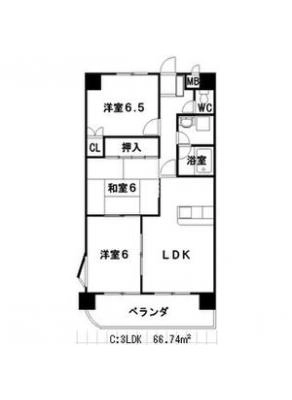 敷 金2.00ヶ月 / 償 却2.00ヶ月間取り 3LDK / 66.73㎡入居日 即 可