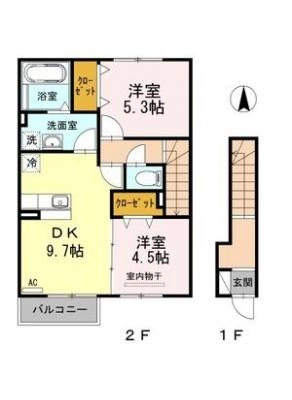 敷 金1.00ヶ月 / 償 却10割間取り 2DK / 43.19入居日 即 可