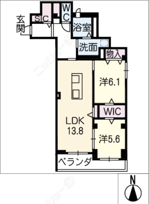 敷 金1ヶ月 / 礼 金1ヶ月間取り 2LDK / 66.61㎡入居日 2026年3月下旬