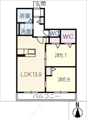 敷 金1ヶ月 / 礼 金1.5ヶ月間取り 2LDK / 59.60入居日 2026年3月下旬