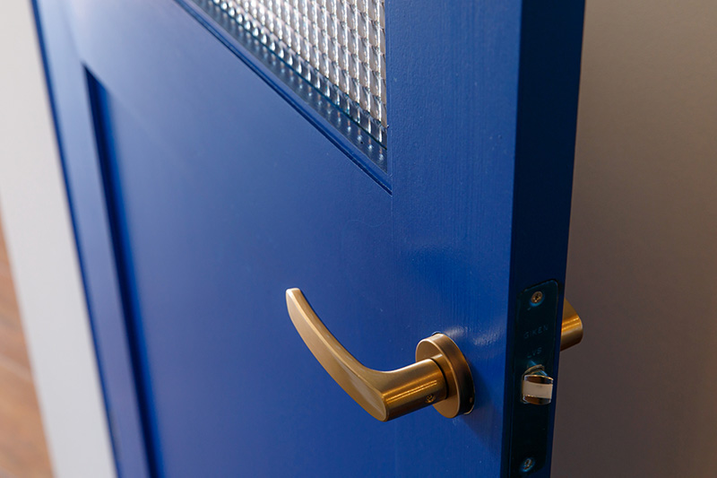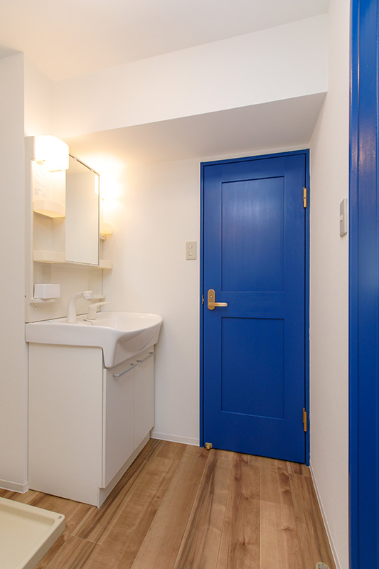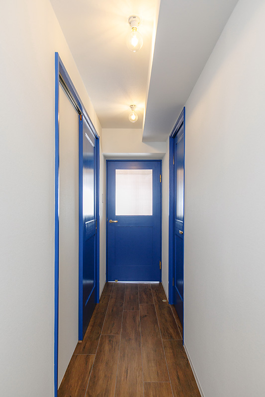 出入口の扉、ここだけがブルーっていうのがこれまたお洒落。