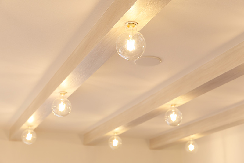 照明の付いた天井の梁は木目が分かるような素材、