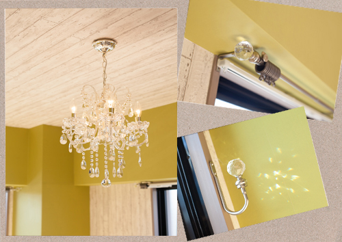 女子部屋ならではのシャンデリアも、