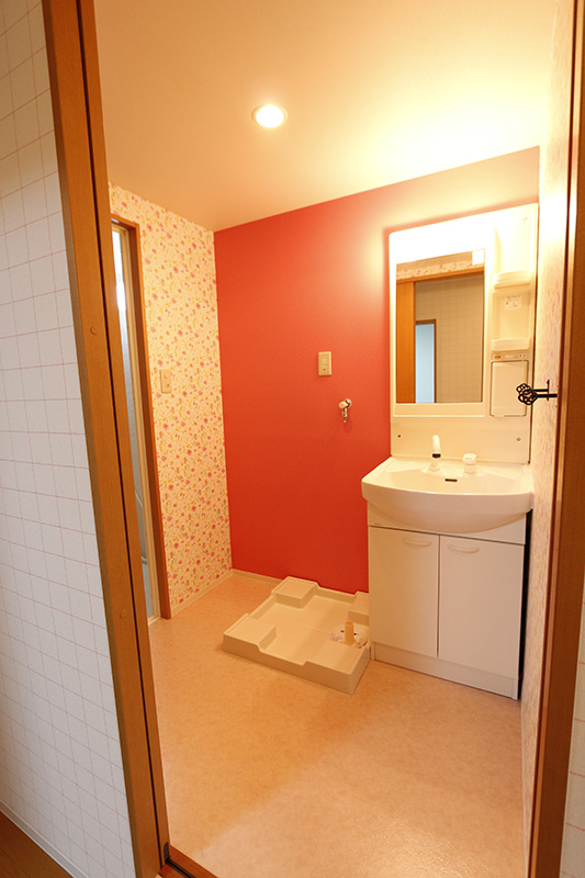 洗面はフューシャピンクと合わせて。