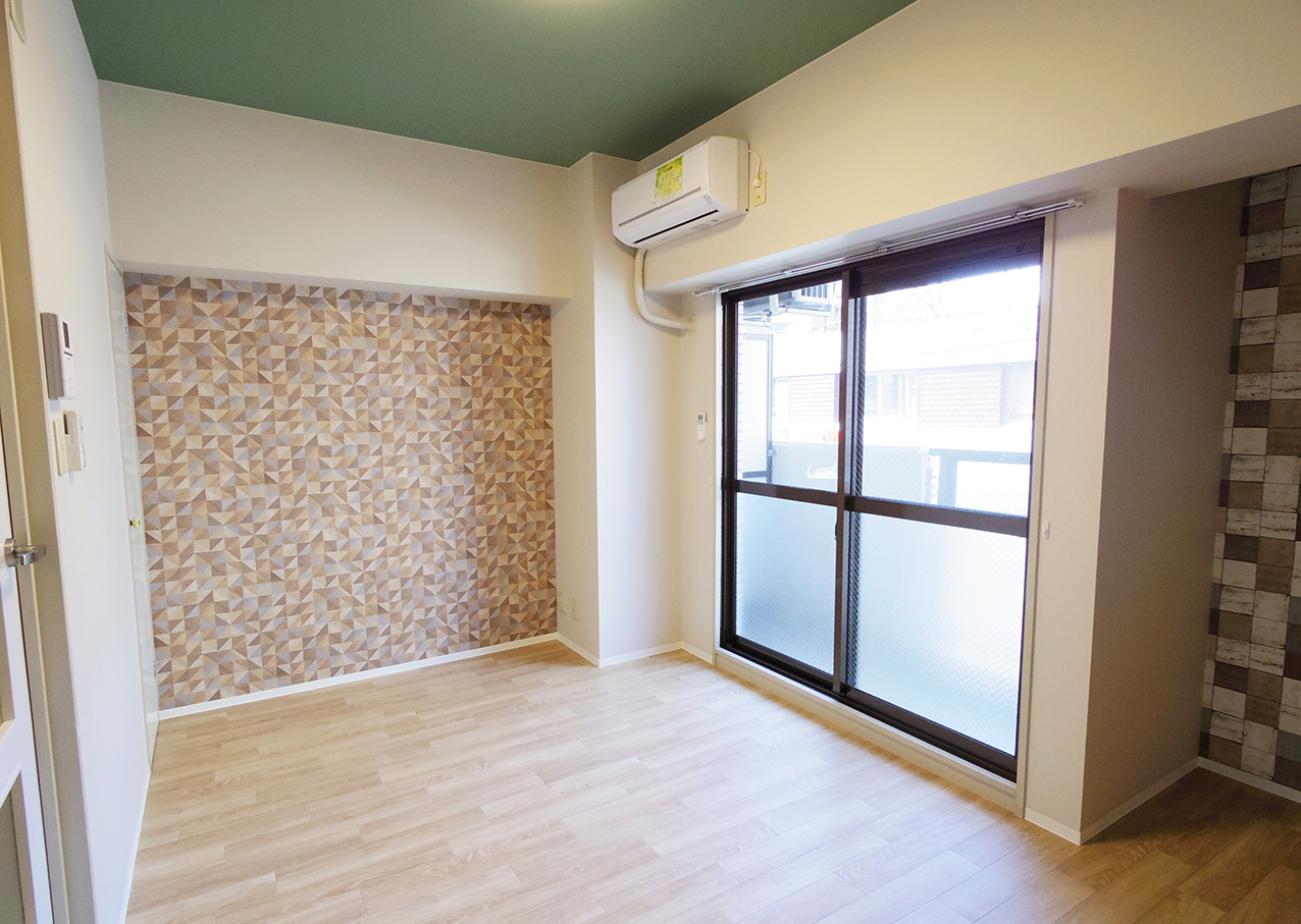 天井は、先程ご紹介したグリーンの壁紙に